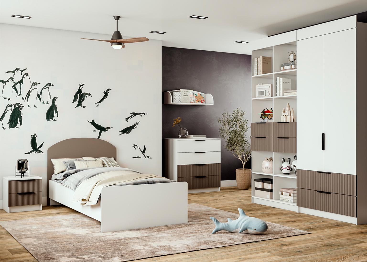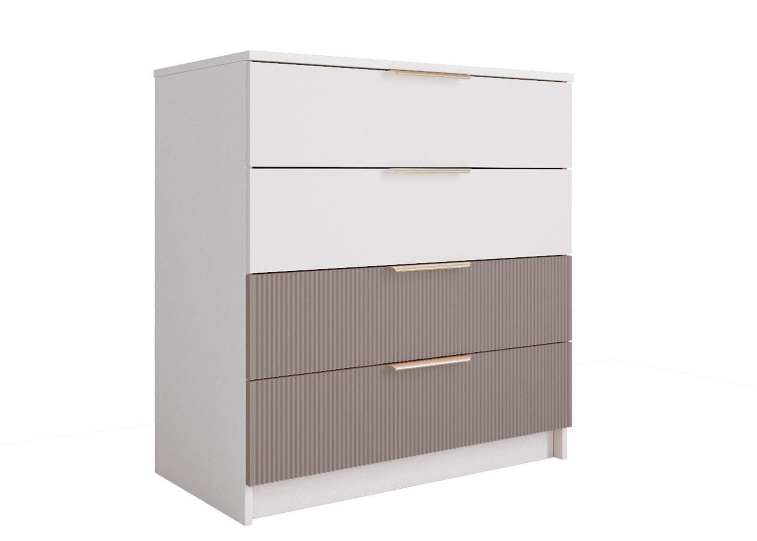 Комод 800 «Лавис» Белый / Грей — часть модульной системы, разработанной специально для подростков, которые хотят создать стильный и удобный интерьер в своей комнате. Особенностью этой коллекции являются рельефные фасады с вертикальной фрезеровкой, придающие мебели элегантный и оригинальный вид.