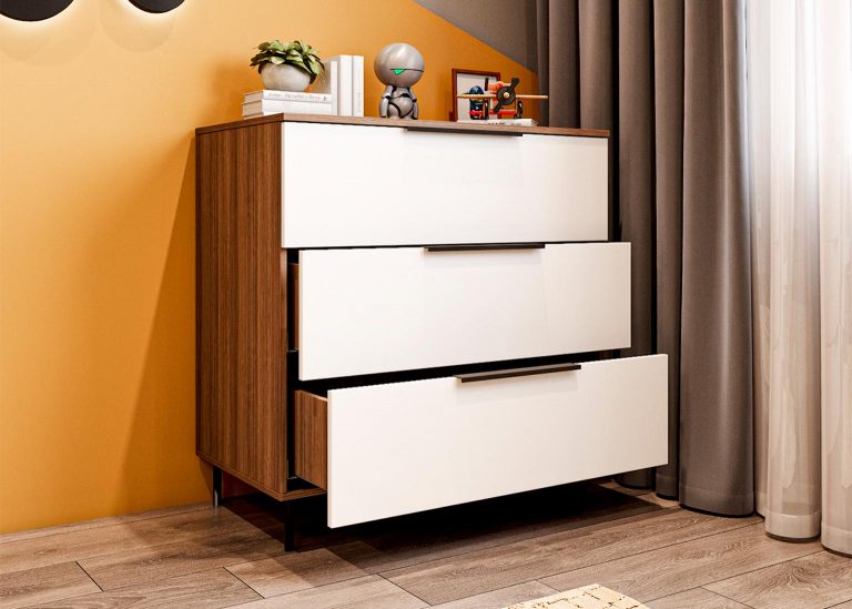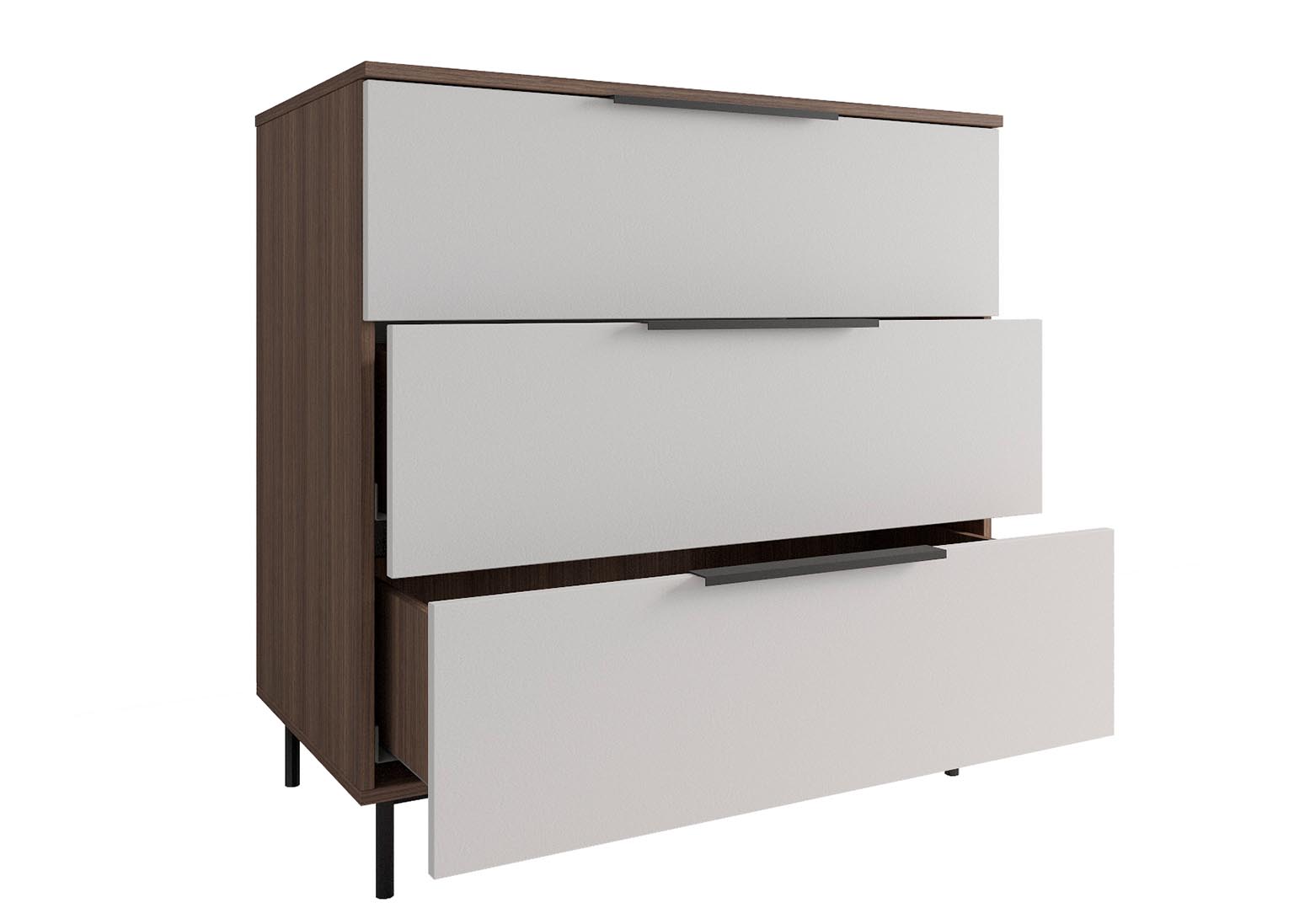 Комод 900 «Роза» Белый оснащён тремя выдвижными ящиками и обеспечивает достаточно много места для хранения различных вещей и предметов.