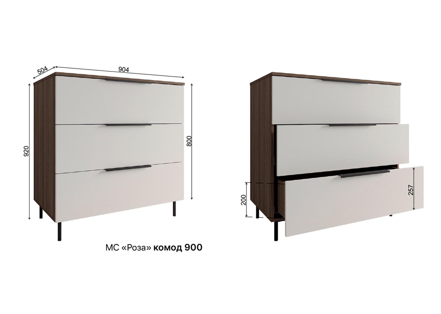 Комод 900 «Роза» Бежевый оснащён тремя выдвижными ящиками и обеспечивает достаточно много места для хранения различных вещей и предметов.