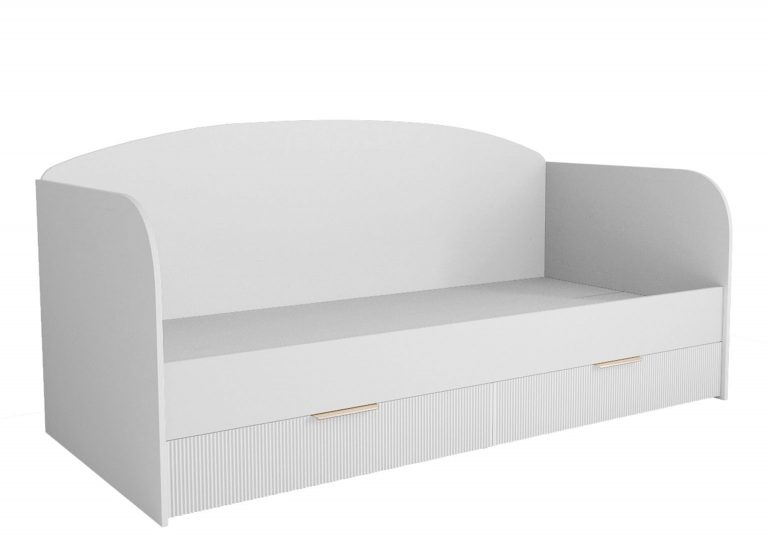 Кровать-диван 90 см «Лавис» Белый / Графит имеет 2 вместительных выдвижных ящика, фасады которых имеют рельефную вертикальную фрезеровку, придающую мебели элегантный и оригинальный вид. Кровать идеально подойдёт как для подростков, так и для детей.