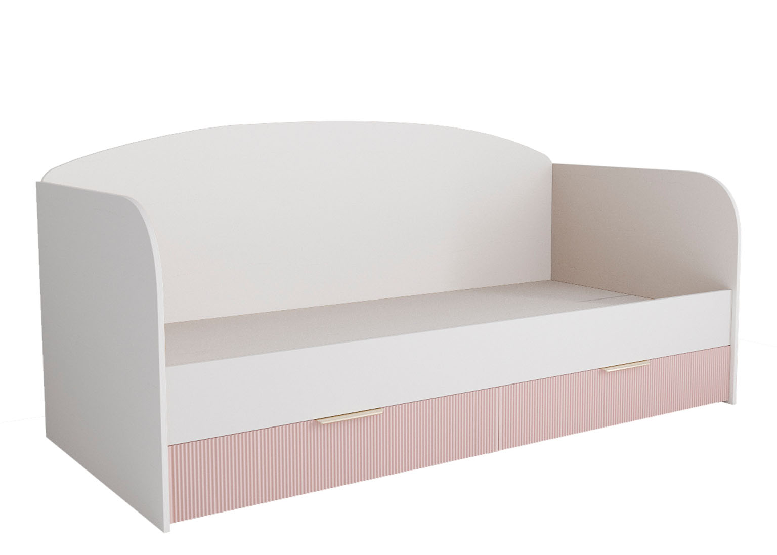 Кровать-диван 90 см «Лавис» Белый / Роза имеет 2 вместительных выдвижных ящика, фасады которых имеют рельефную вертикальную фрезеровку, придающую мебели элегантный и оригинальный вид. Кровать идеально подойдёт как для подростков, так и для детей.