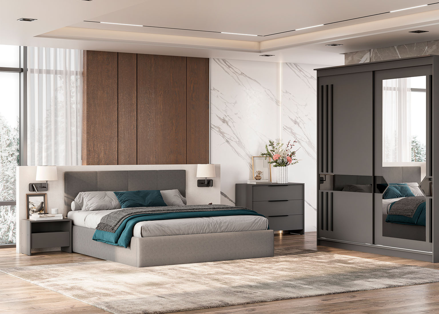 Главная Спальни Кровати Кровать двуспальная № 4 Серая