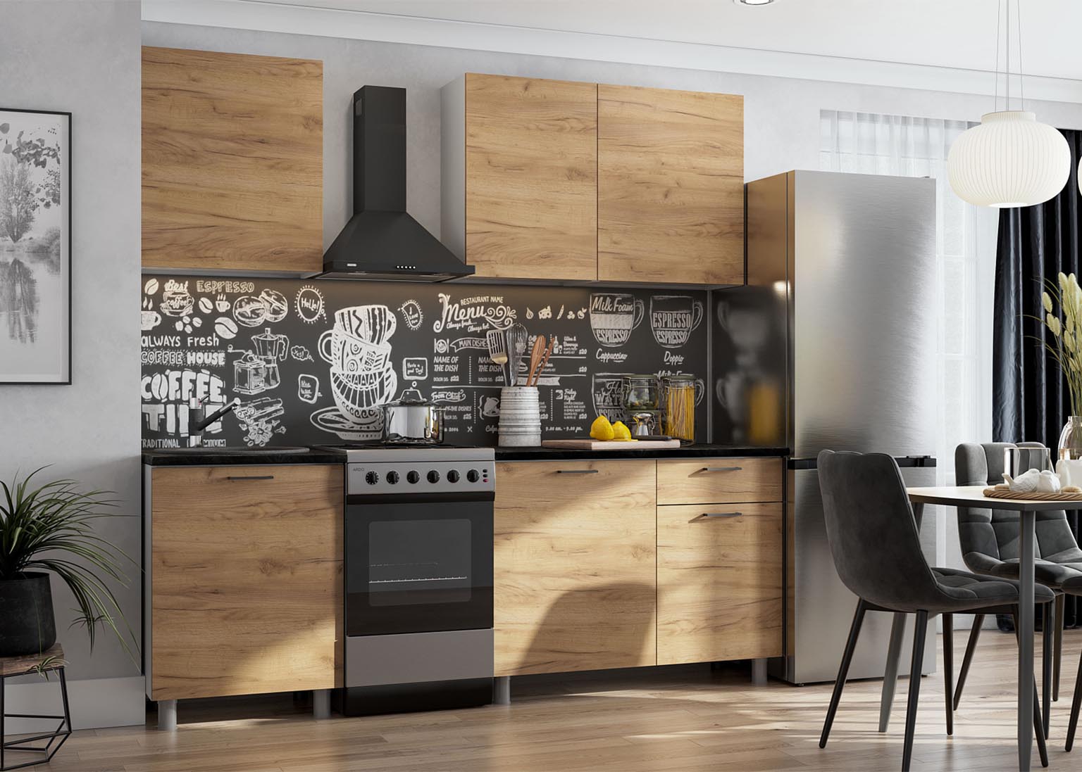 Кухня «Лаванда» Дуб Золотой со столешницей — это готовый кухонный гарнитур шириной 1,7 м, который комплектуется столешницей.