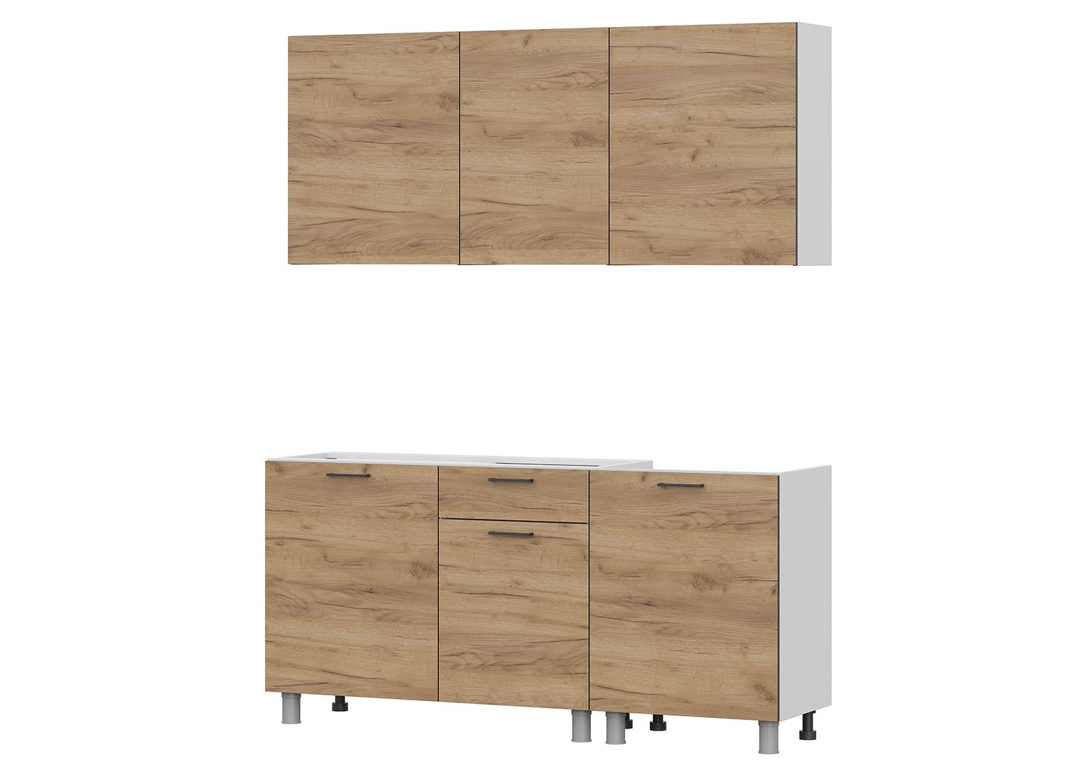 Кухня «Лаванда» Дуб Золотой — это готовый кухонный гарнитур шириной 1700 мм, который не комплектуется столешницей.