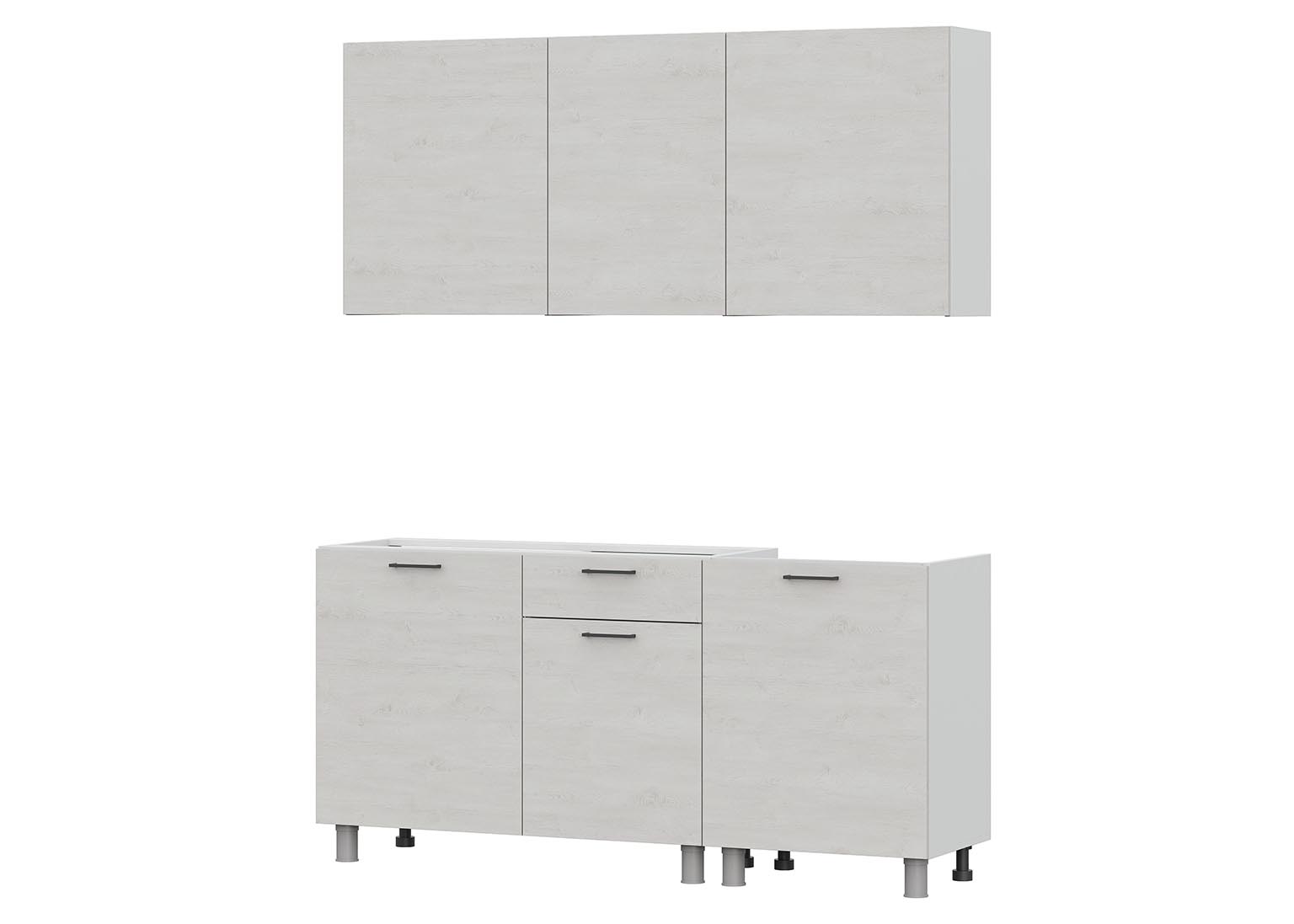 Кухня «Лаванда» Сосна Санторини светлый — это готовый кухонный гарнитур шириной 1700 мм, который не комплектуется столешницей.