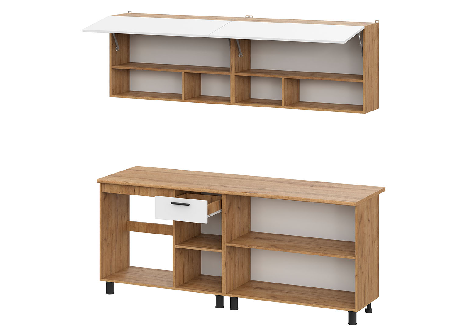 - Столешница «Дуб Вотан» толщиной 26 мм входит в комплект.