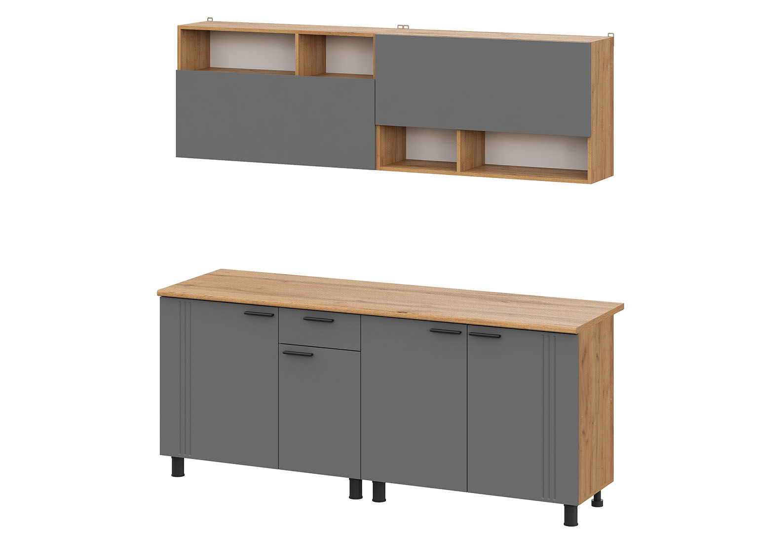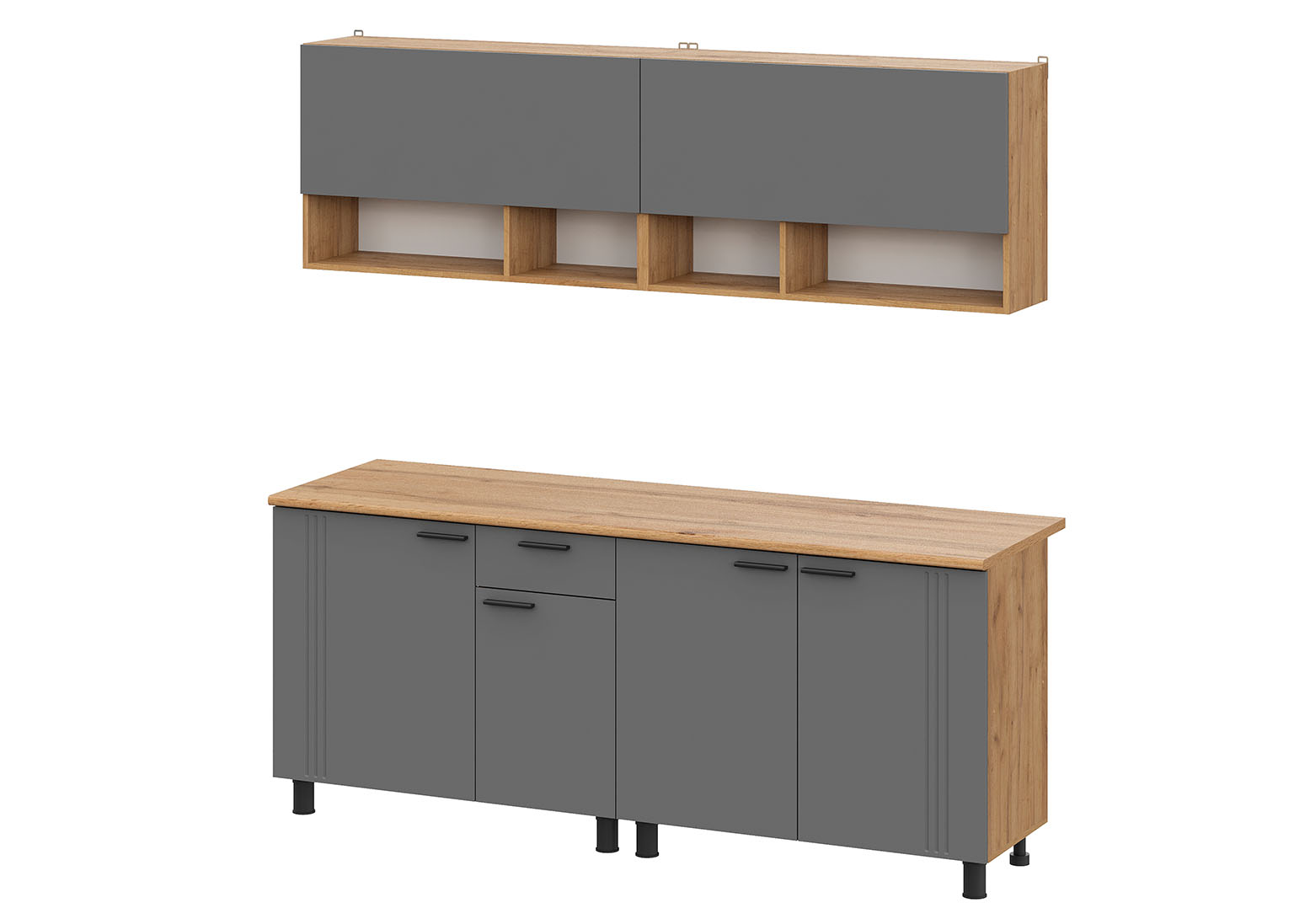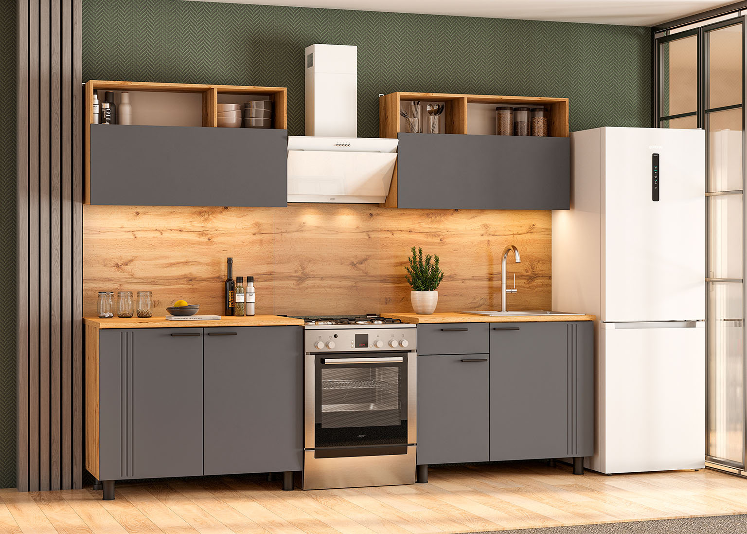Кухня «Монако» в цвете «Графит» — это готовый комплект мебели для кухни длиной 2 метра. Фасад выполнен из МДФ.