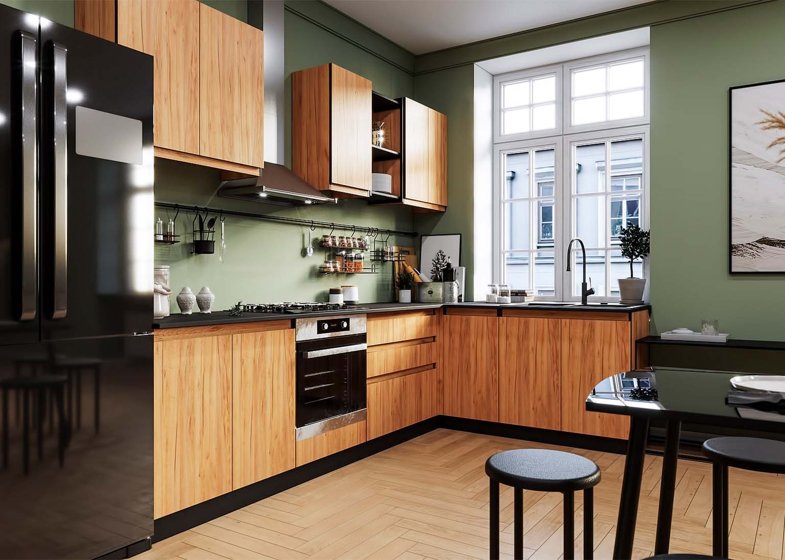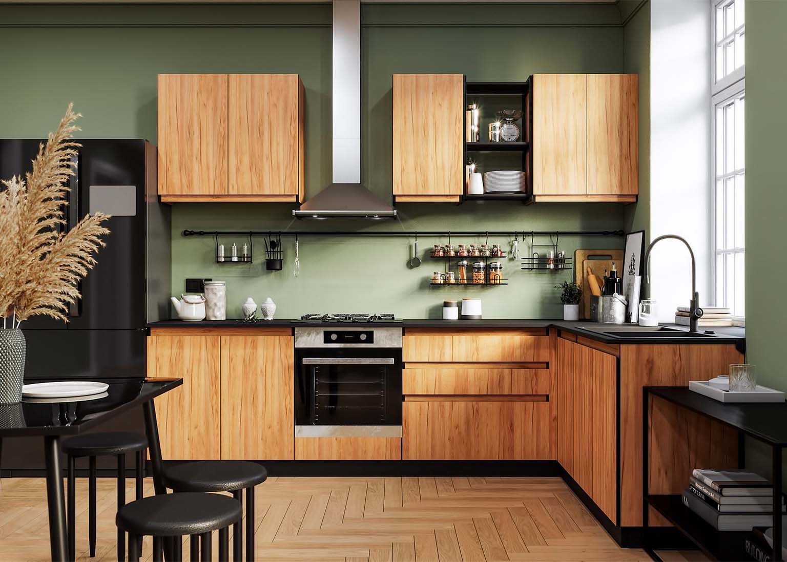 Модульная кухня «Соната» с фасадами в цвете Дуб Золотой — это идеальный выбор для тех, кто ищет современный и стильный дизайн кухни. Она сочетает в себе функциональность, прочность и эстетическое оформление.