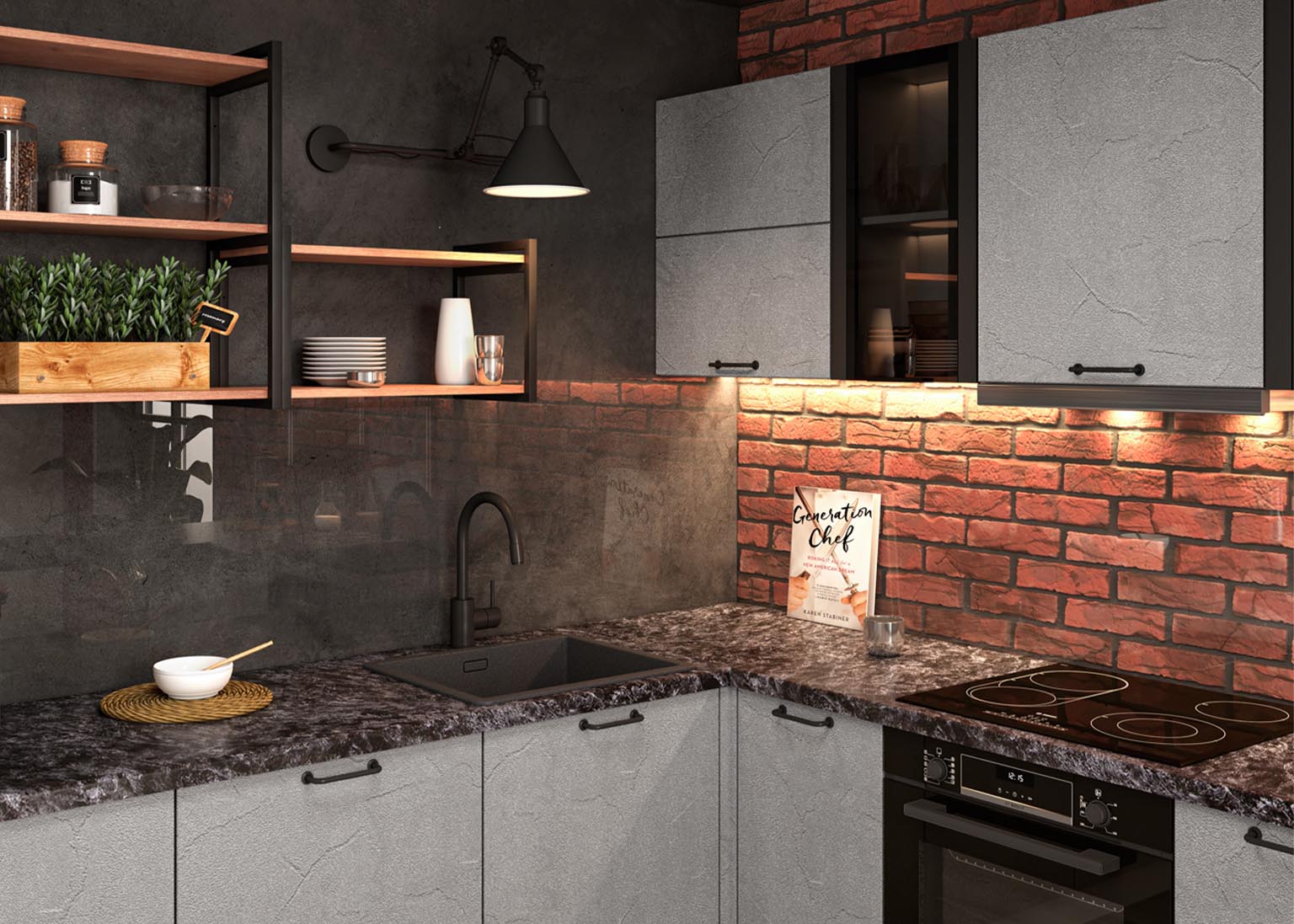 Кухня «Лофт» — это продуманный дизайн и высокое качество материалов. Геометрически простая мебель помогает грамотно организовать пространство в едином индустриальном стиле.