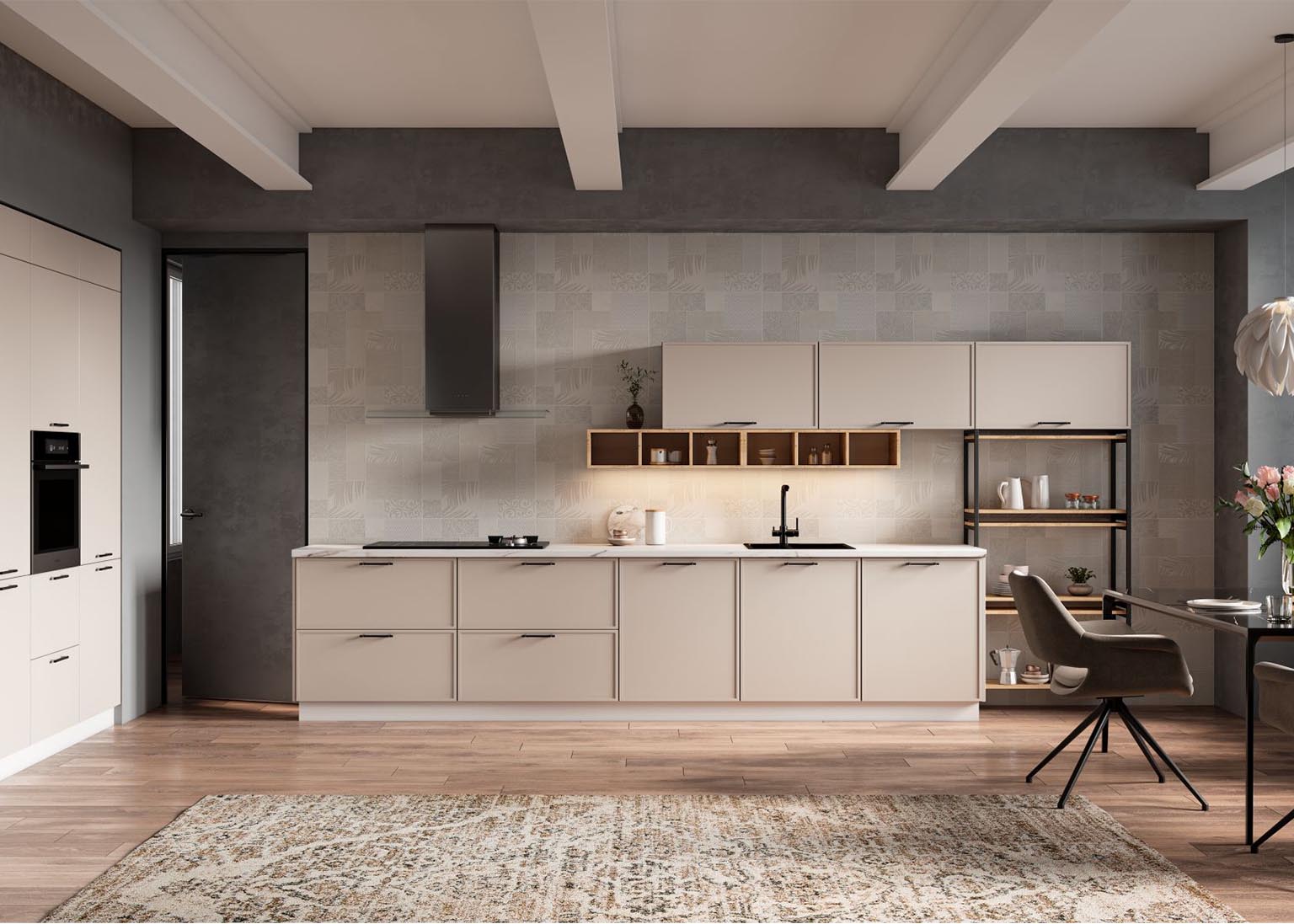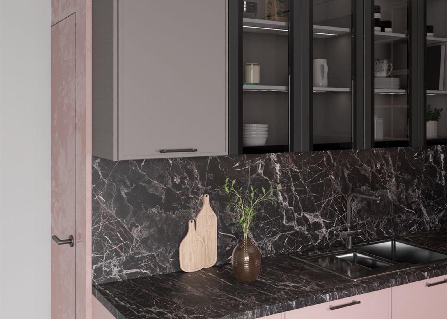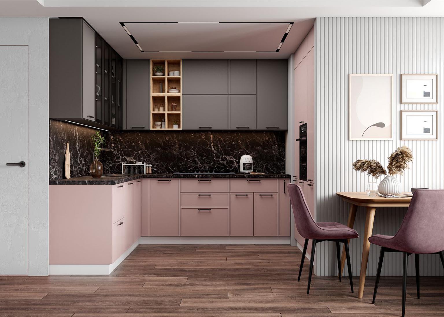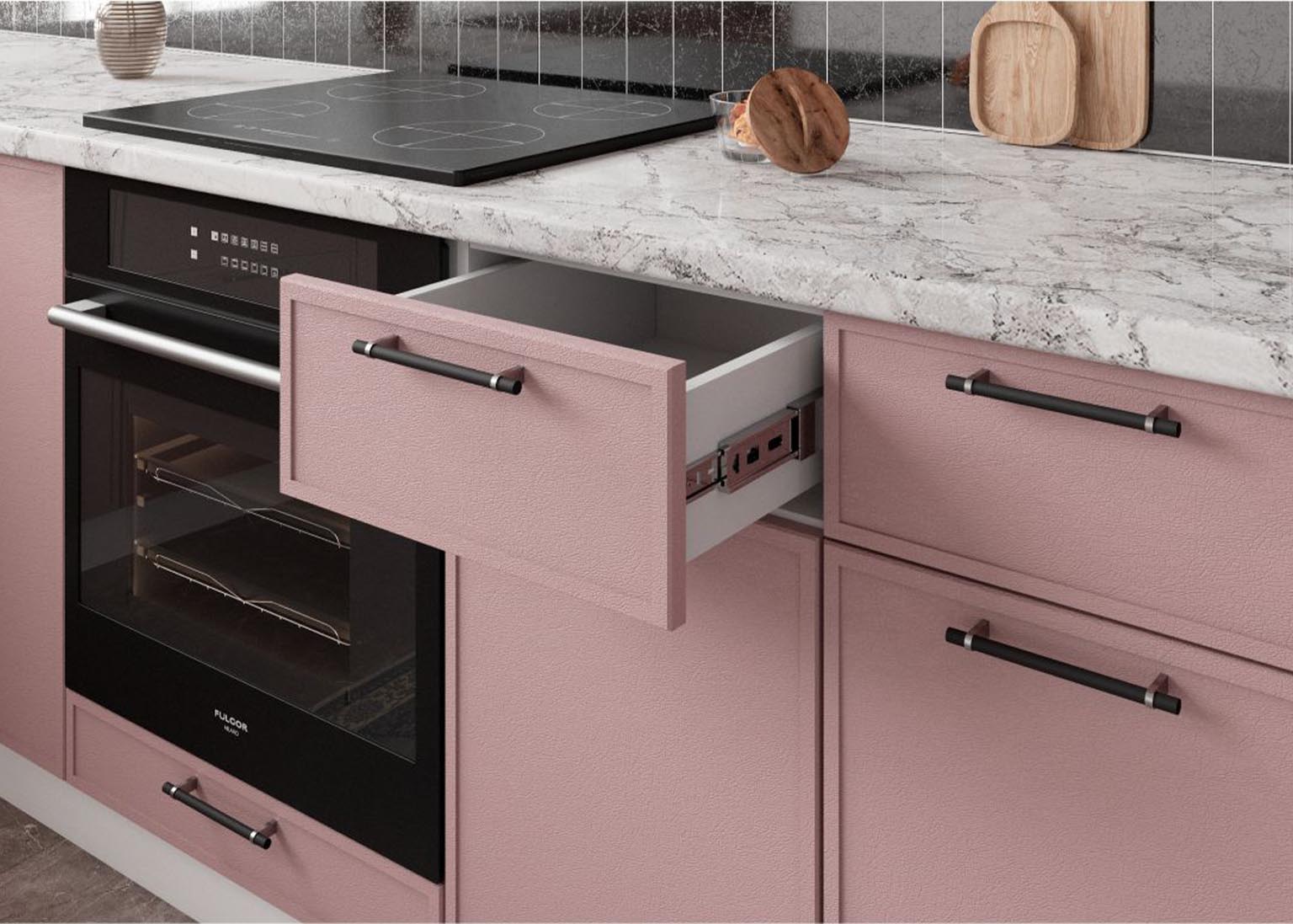 Модульная кухня «Марта» — идеальное сочетание элегантности и функциональности. Необычные фасады толщиной 19 мм с благородной текстурой «Кожа» придают вашей кухне стильный и современный вид, который выделяется среди аналогов.