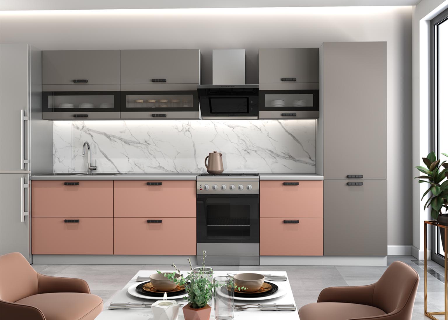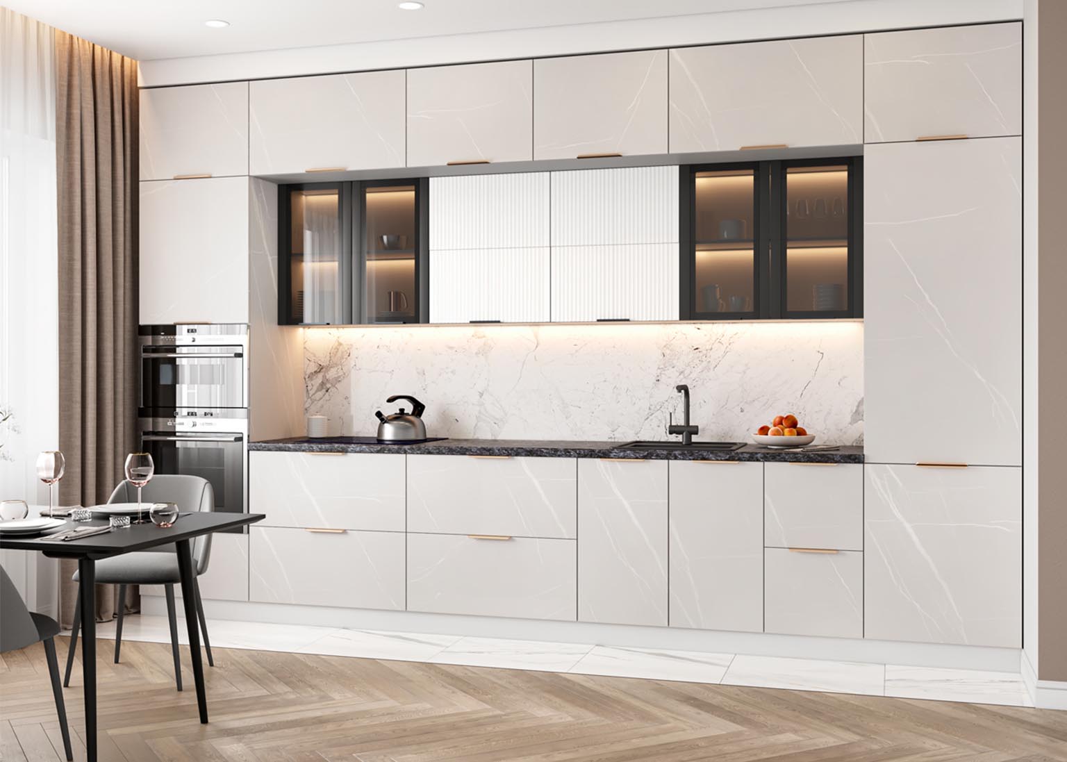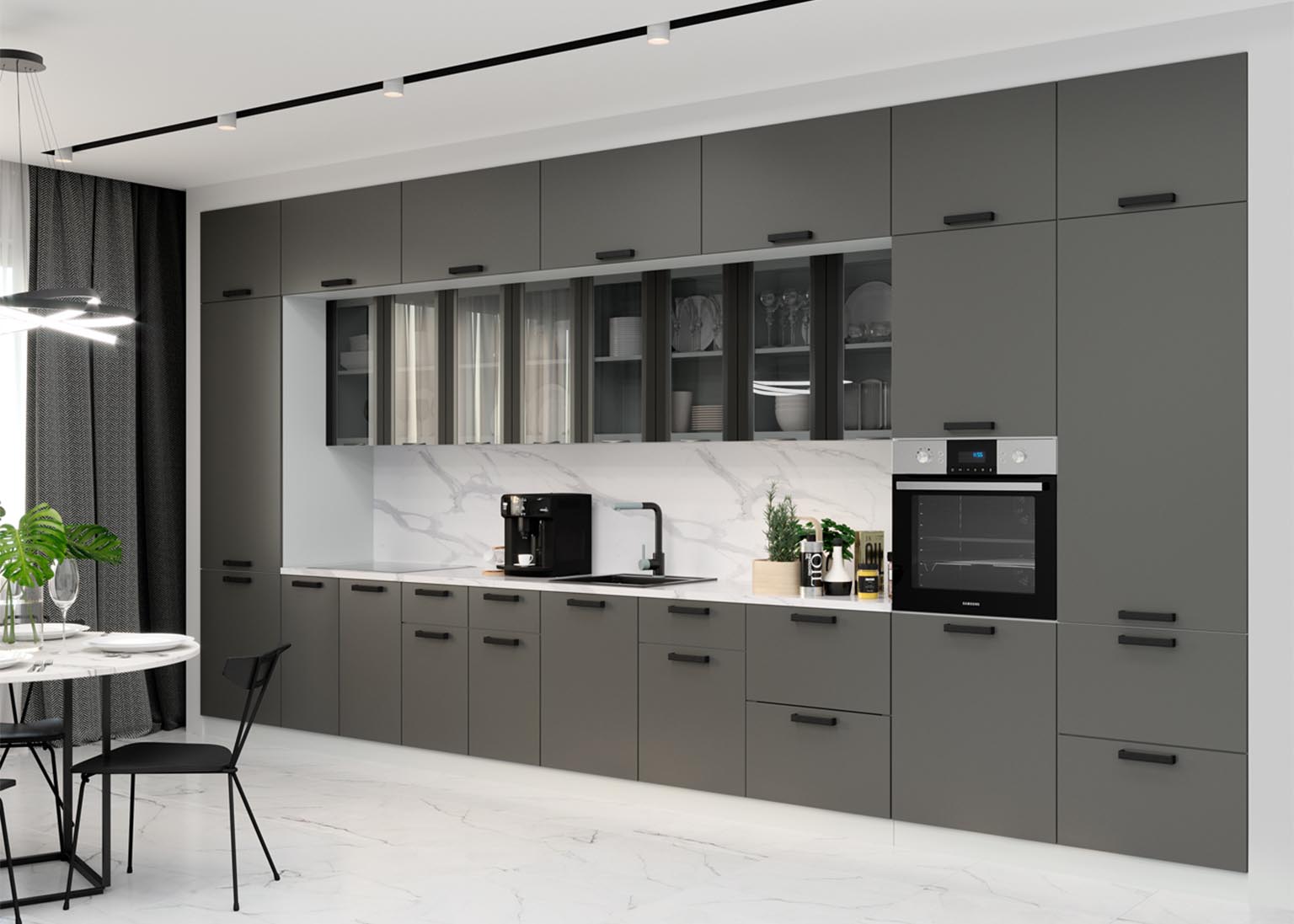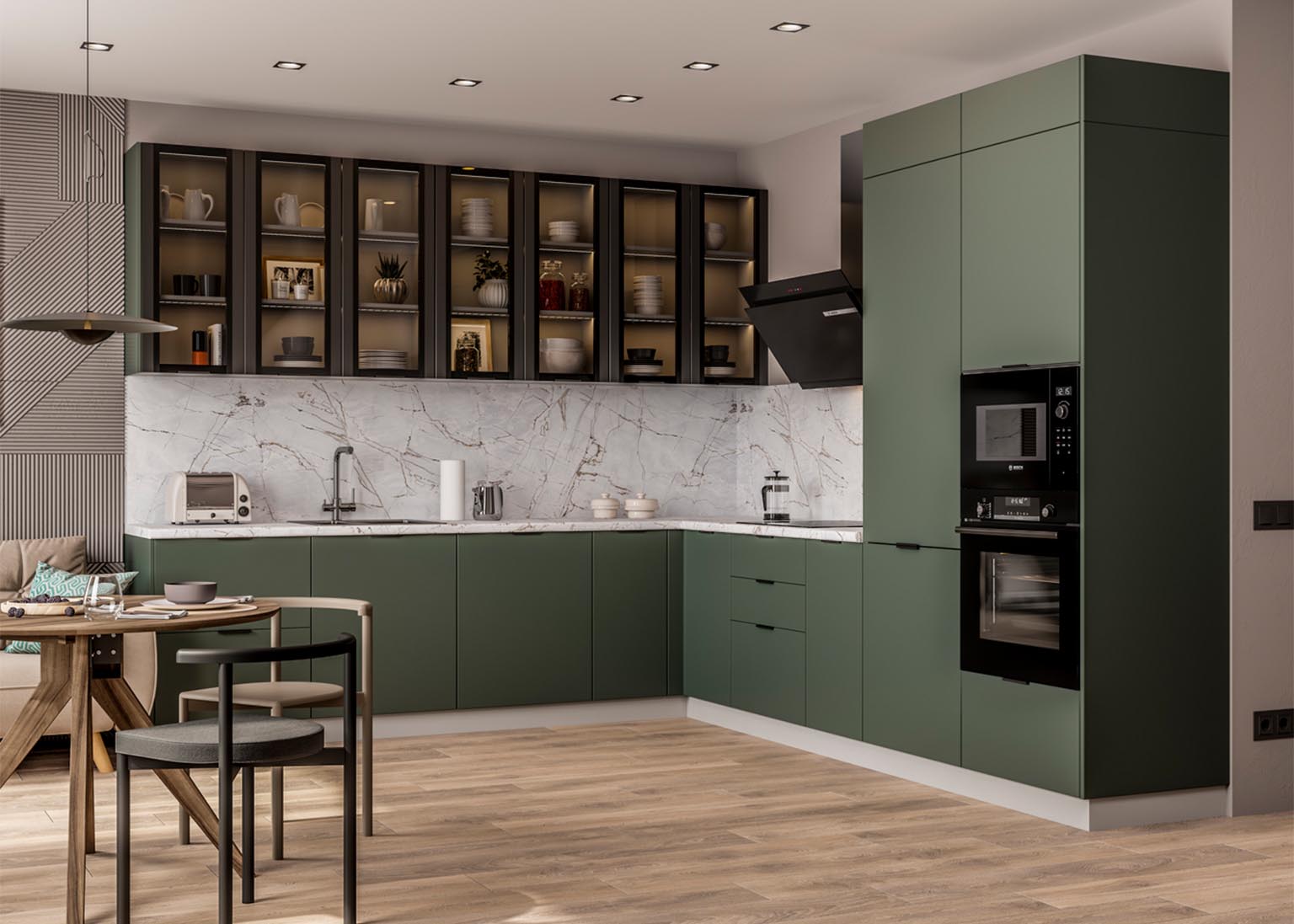Цветовая палитра кухонного гарнитура подчеркивает её стиль и атмосферу. Оттенки белого софта, зелёного софта, грей софта и других холодных цветов создают ощущение простора и лёгкости. Лаконичные фасады украсят любой интерьер, добавляя в него яркие акценты.