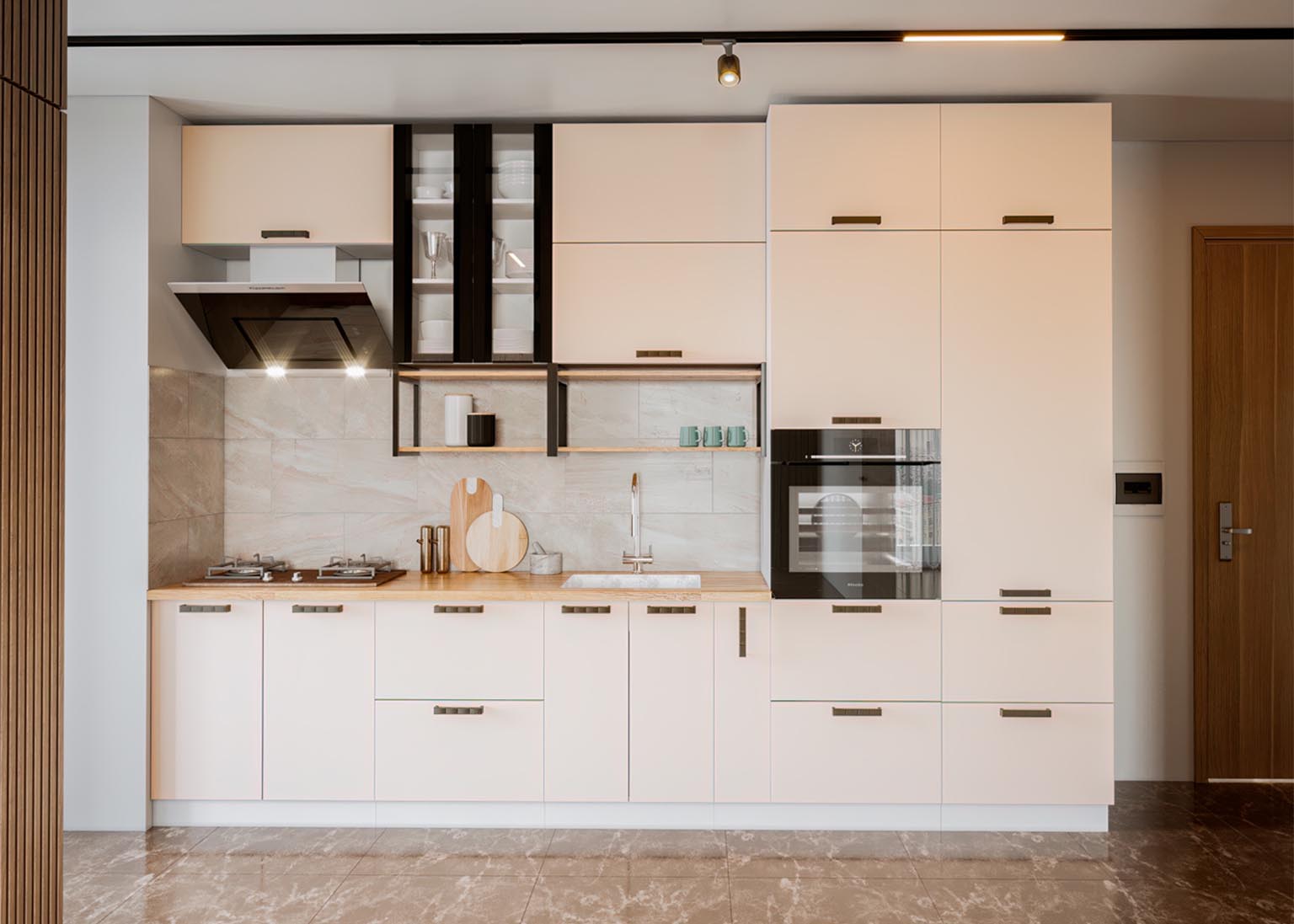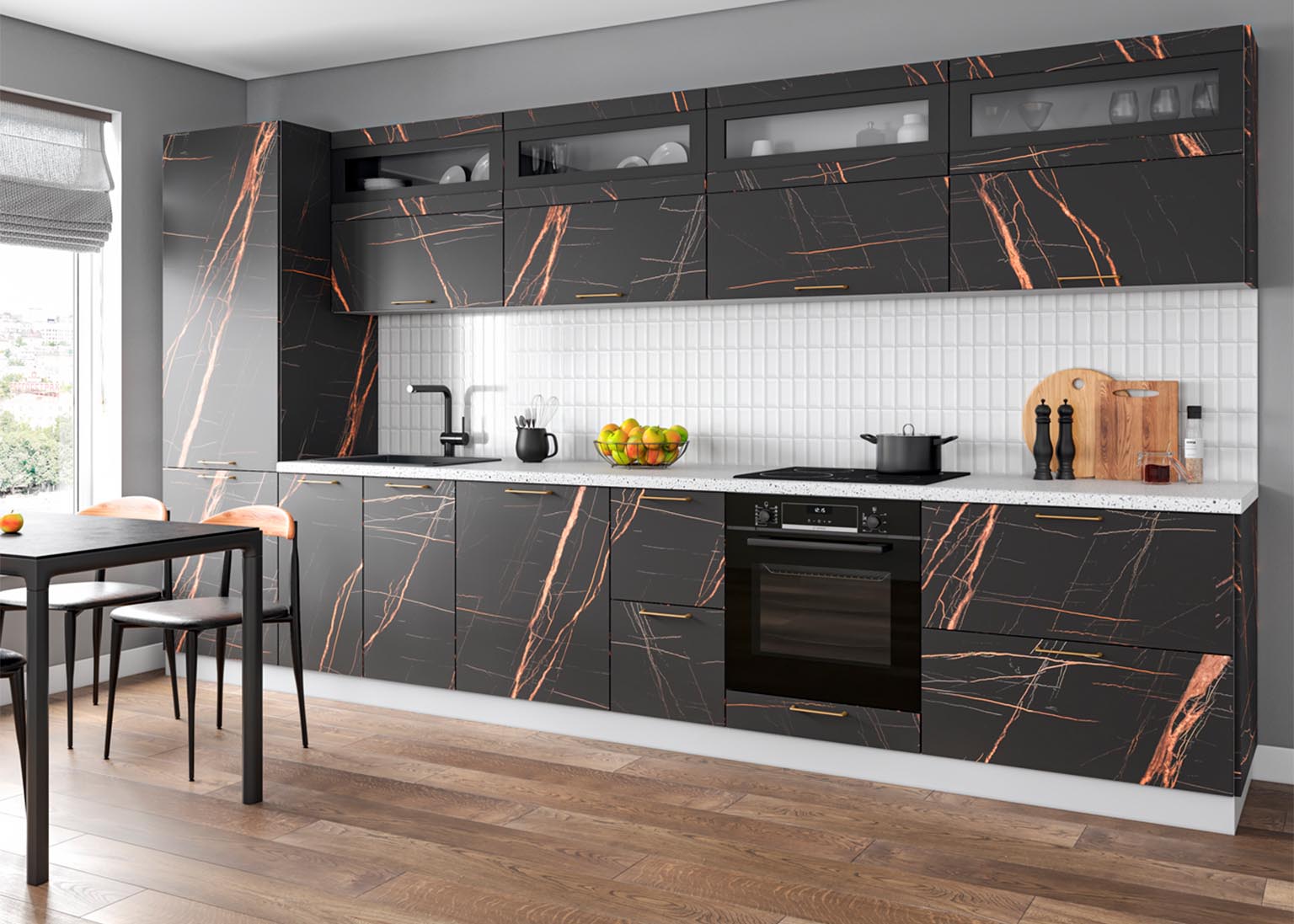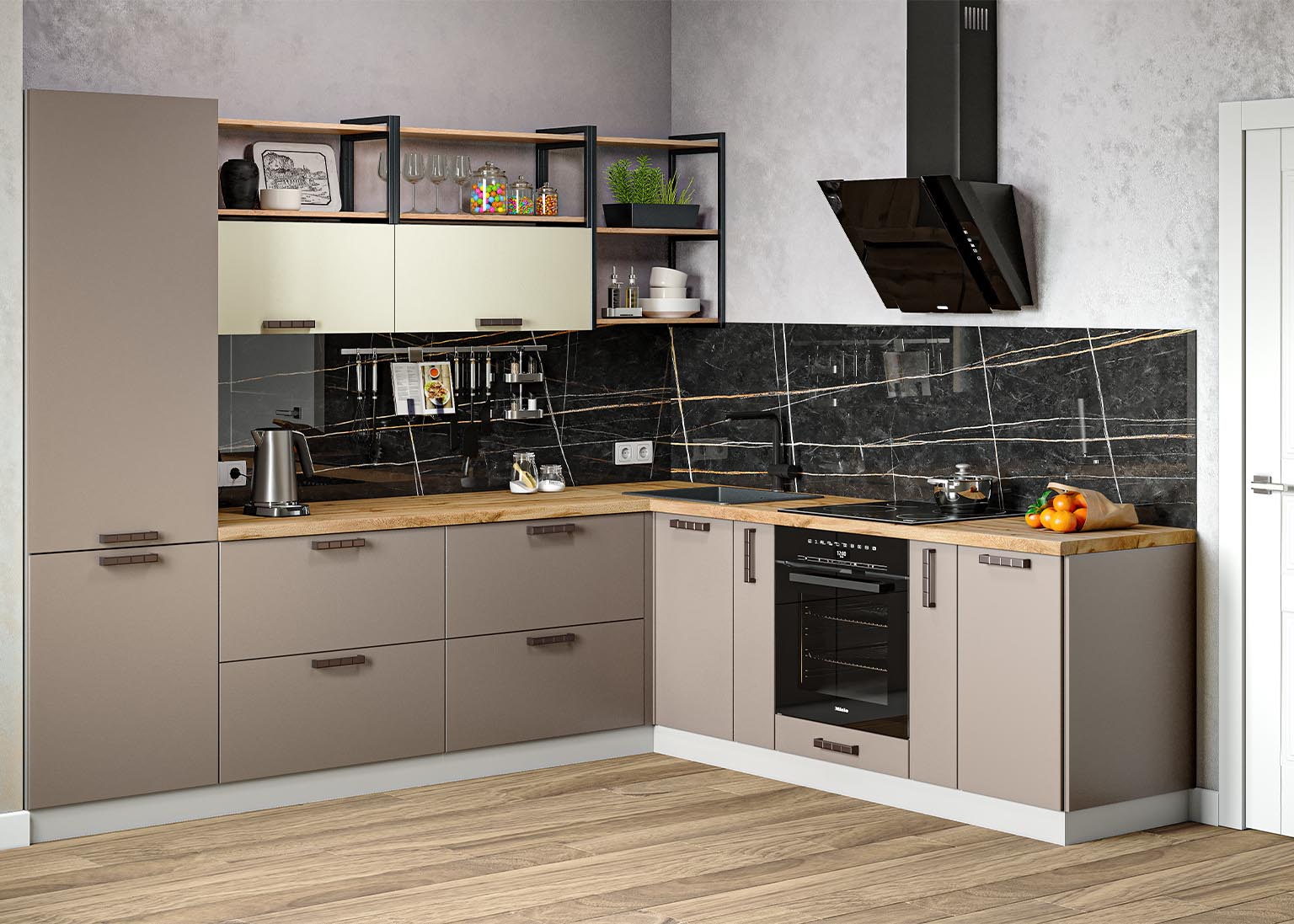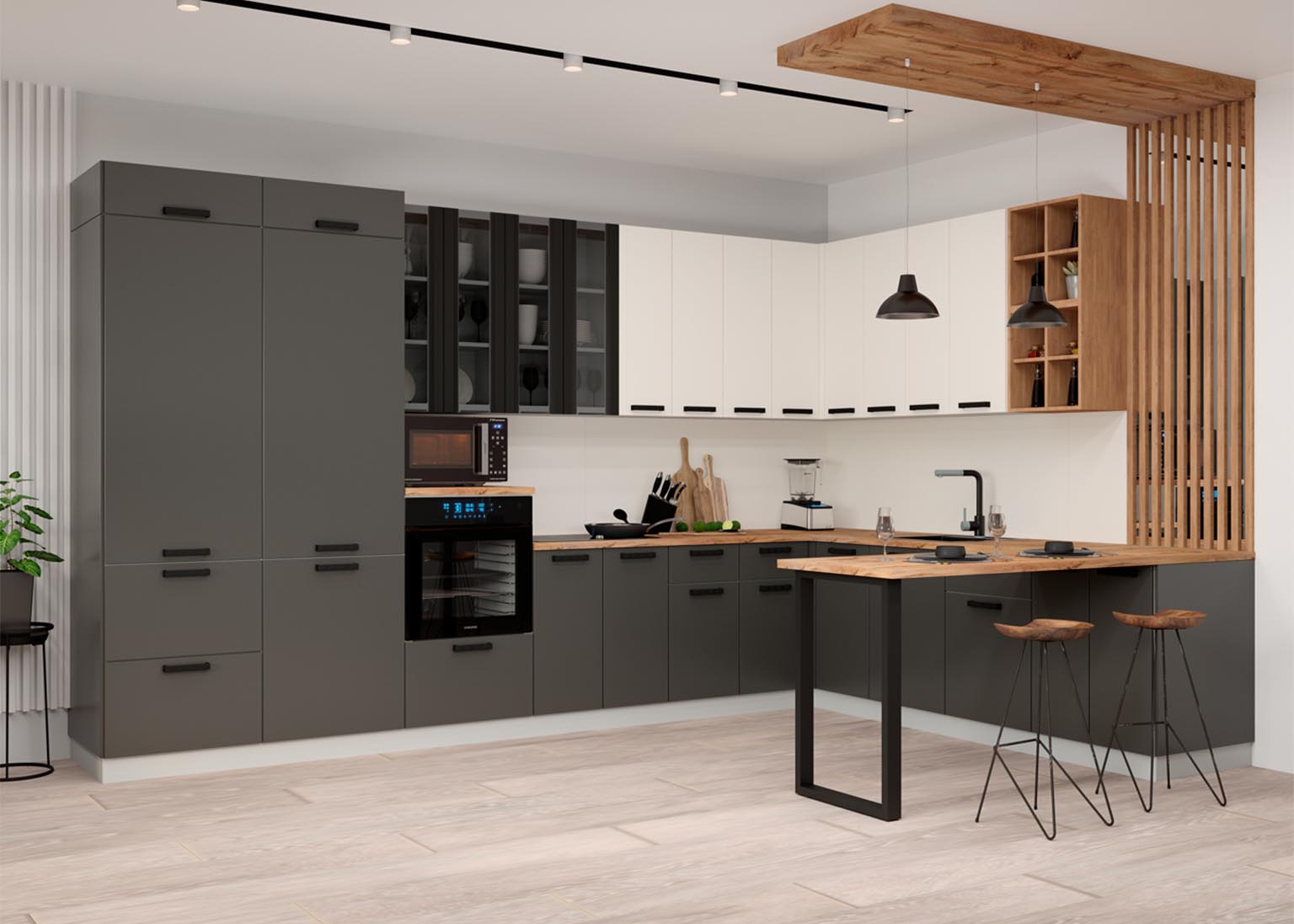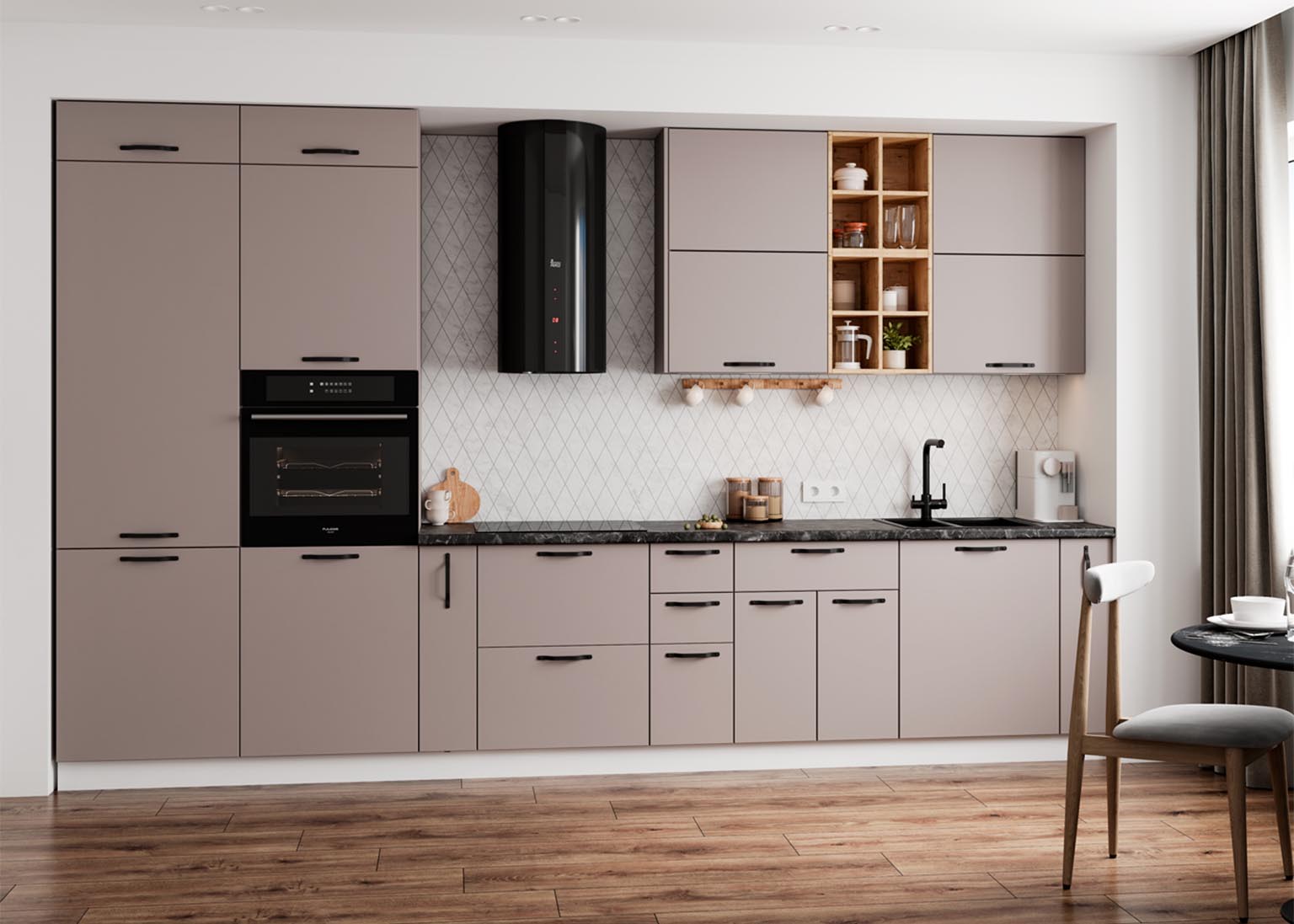 Кухня «Ройс» не только великолепно выглядит, но и обладает высокой функциональностью. Её модульная конструкция делает рабочую зону практически пустой, готовой принять разнообразные кулинарные задумки. Приятная на ощупь матовая поверхность легко моется, делая уход за кухней максимально удобным.