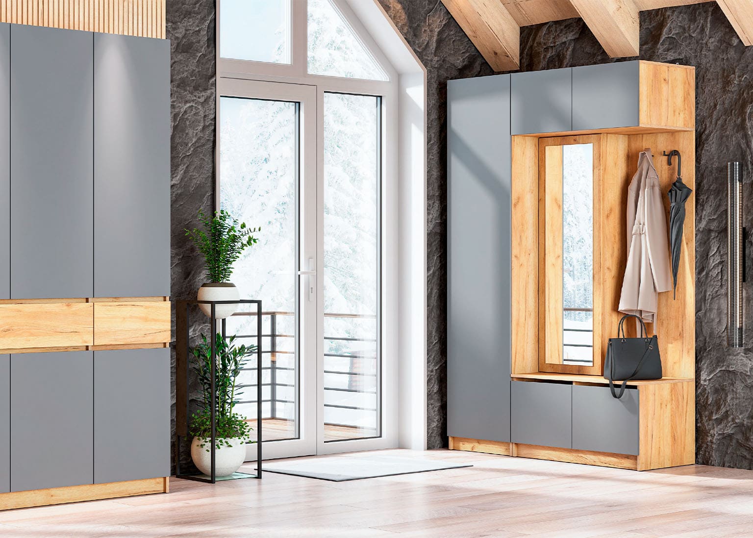 Прихожая «Авиньон» оснащена вместительными шкафами, позволяющими удобно хранить верхнюю одежду, обувь и аксессуары. Внутреннее пространство шкафов продумано до мелочей, чтобы обеспечить максимальную функциональность и комфорт. Различные отделения, полки и вешалки позволяют легко организовать хранение всех необходимых вещей, поддерживая порядок и лёгкость в их нахождении.