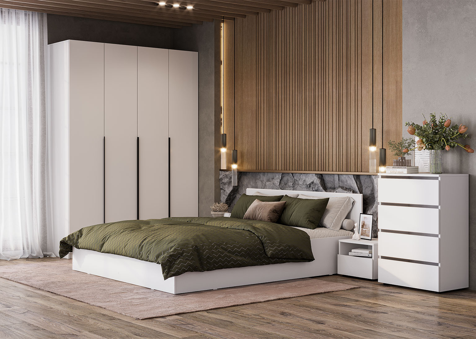 Дополнительные опции включают комплект полок и комплект ящиков, что позволяет настроить шкаф в соответствии с вашими потребностями. Вы можете установить до двух ящиков одновременно. Для наилучшей организации пространства и скрытия содержимого верхнего ящика мы рекомендуем также приобрести комплект полок. Все дополнительные элементы приобретаются отдельно, что даёт вам возможность гибко подходить к выбору конфигурации шкафа.