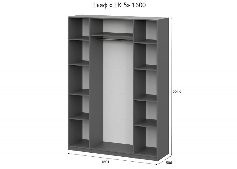 Шкаф 1600 «ШК 5» Графит сочетает в себе функциональность и эстетический дизайн, становясь незаменимым элементом вашего интерьера.
