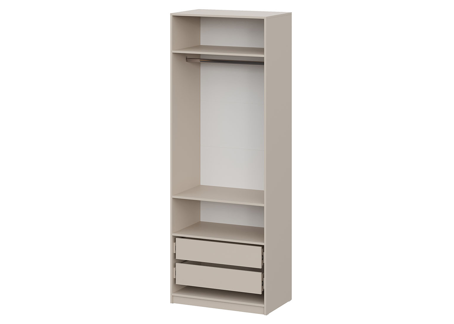 Дополнительные опции включают комплект полок и комплект ящиков, что позволяет настроить шкаф в соответствии с вашими потребностями. Вы можете установить до двух ящиков одновременно. Для наилучшей организации пространства и скрытия содержимого верхнего ящика мы рекомендуем также приобрести комплект полок. Все дополнительные элементы приобретаются отдельно, что даёт вам возможность гибко подходить к выбору конфигурации шкафа.