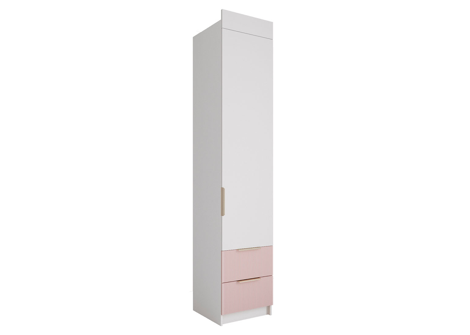 Шкаф-пенал «Лавис» Белый / Роза оснащён фасадами из МДФ с элегантной вертикальной рельефной фрезеровкой, придающей мебели изысканный и уникальный облик.