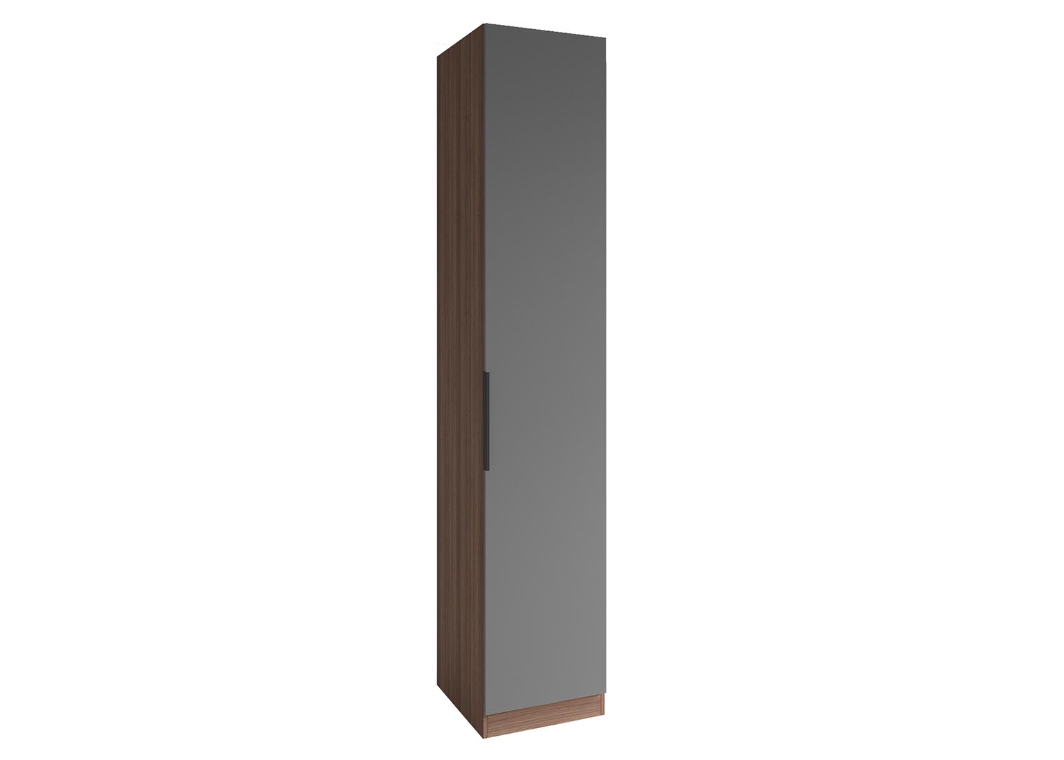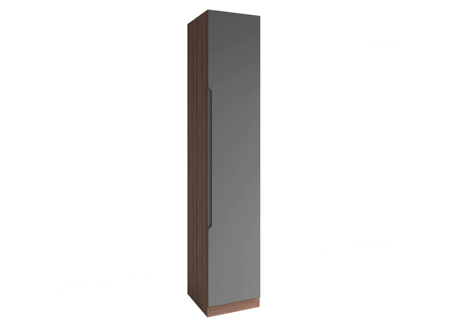 Шкаф-пенал «Роза» Графит включает в себя две полки и штангу для вешалок, однако дополнительно можно приобрести любое количество полок и ящиков, а также определить их расположение. Всё это позволит создать полноценную гардеробную систему.