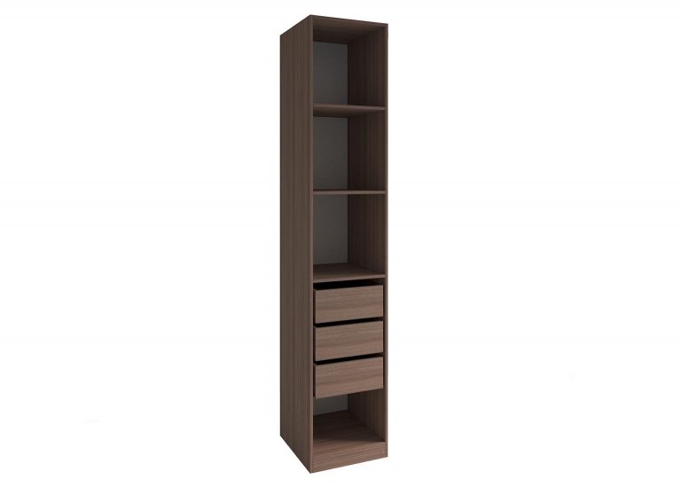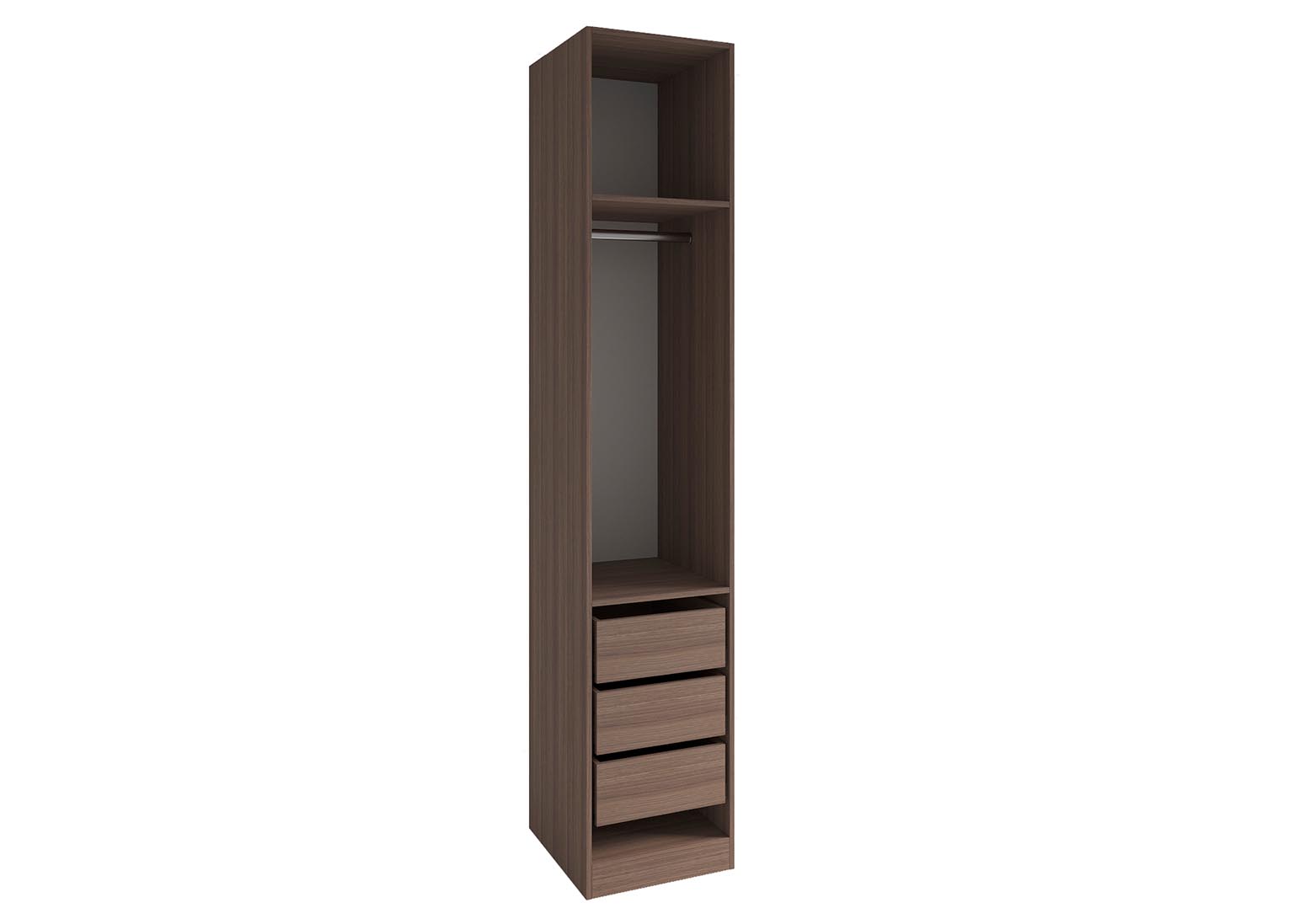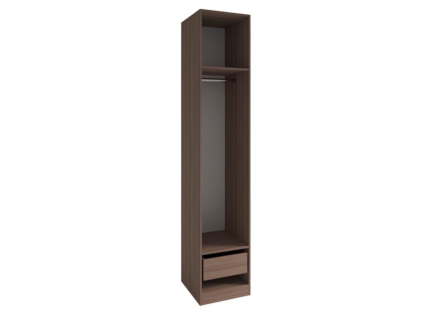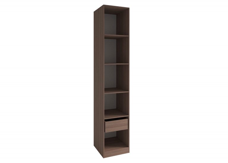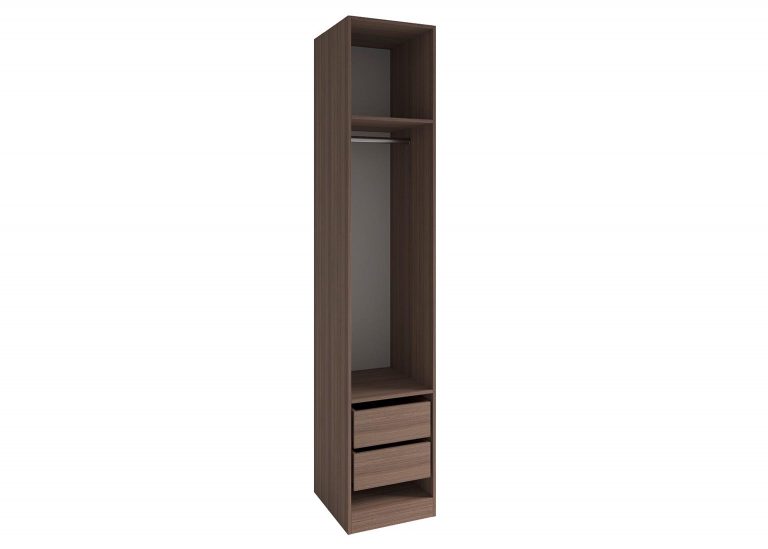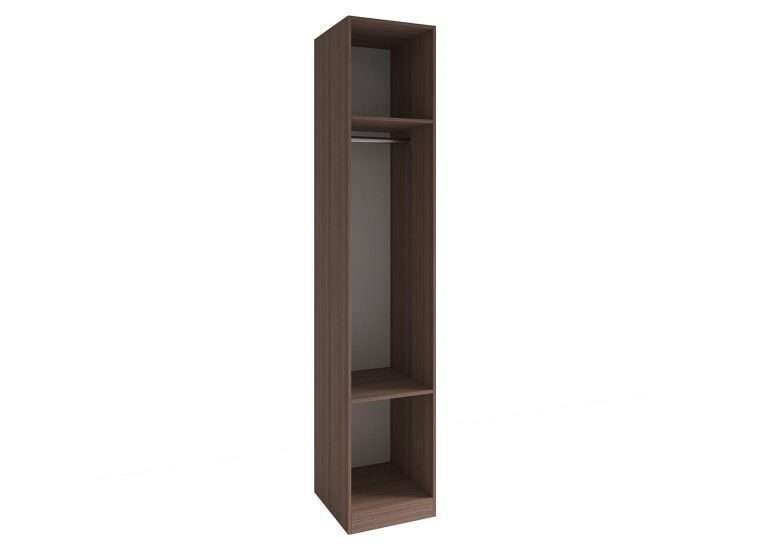 Шкаф-пенал «Роза» Пудра включает в себя две полки и штангу для вешалок, однако дополнительно можно приобрести любое количество полок и ящиков, а также определить их расположение. Всё это позволит создать полноценную гардеробную систему.