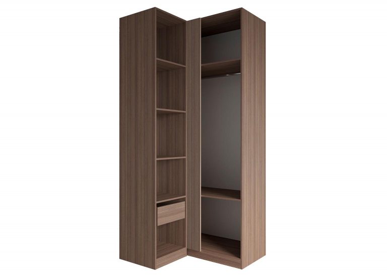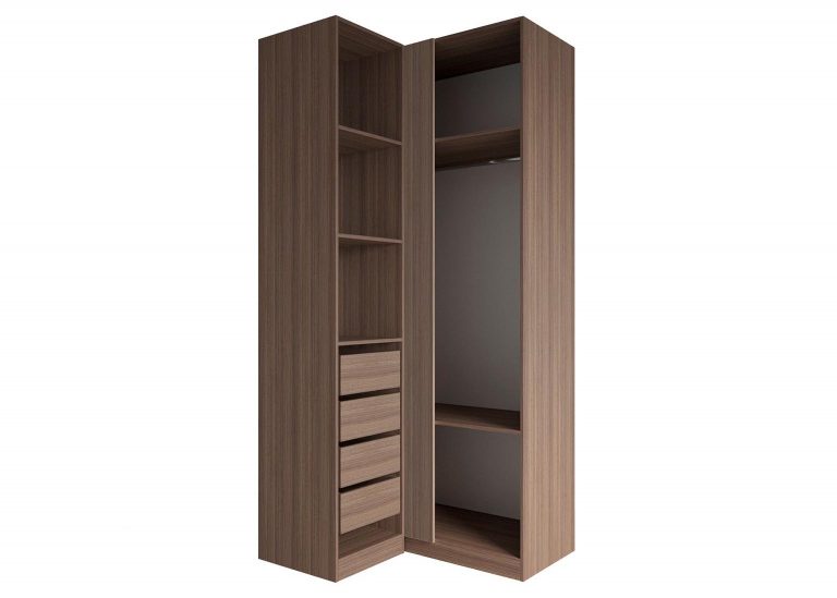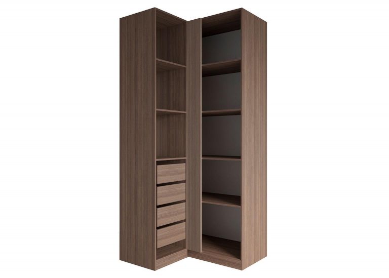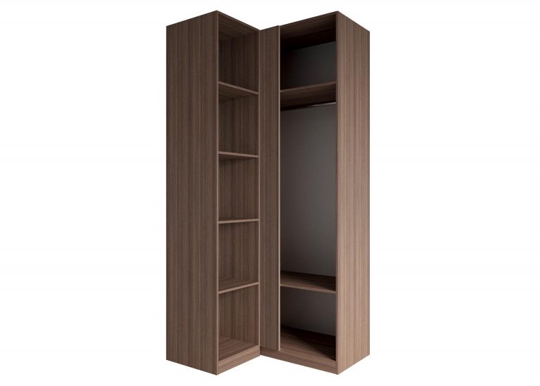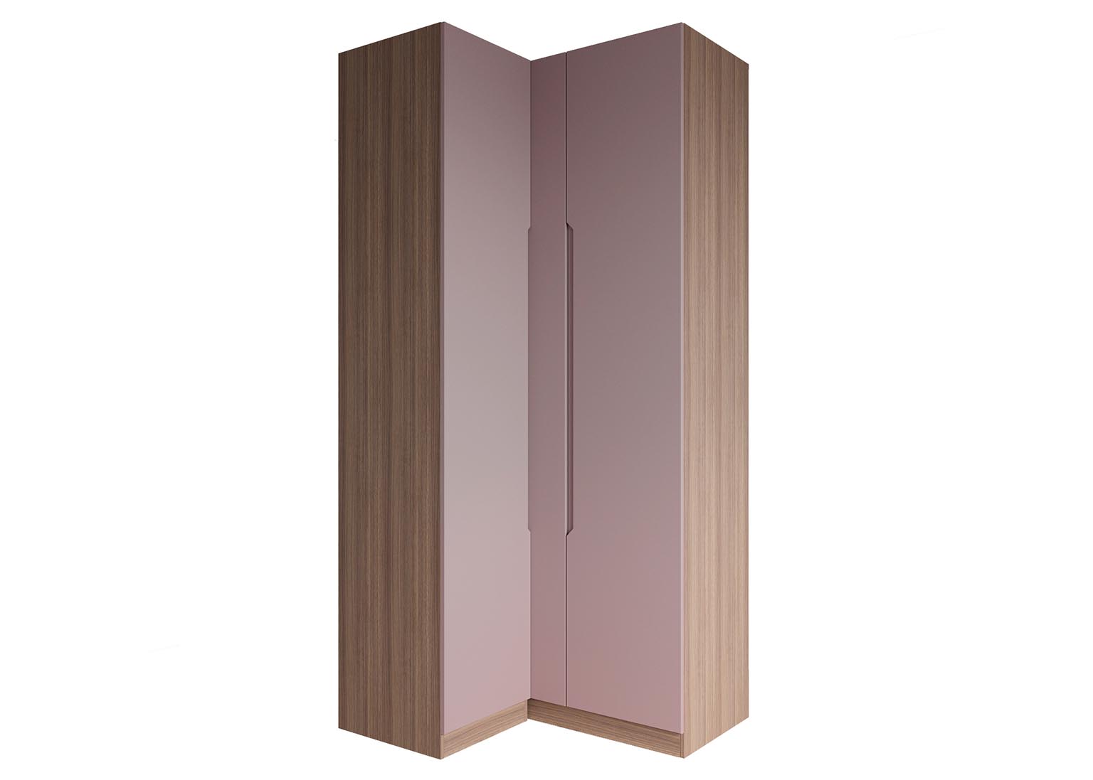 Шкаф угловой «Роза» Пудра — модульный шкаф, который предполагает множество вариантов для организации хранения вещей. Ключевой особенностью шкафа является возможность конфигурации внутреннего наполнения, которая позволяет создавать индивидуальные решения. Базовая комплектация состоит из четырёх узких полок в меньшей секции, двух широких полок в большой секции и одной штанги. Дополнительные полки и ящики приобретаются отдельно. Возможна комплектация шкафа без фасада для сборки открытой гардеробной. Угловой шкаф имеет универсальную сборку, может быть собран как на правую сторону, так и на левую.