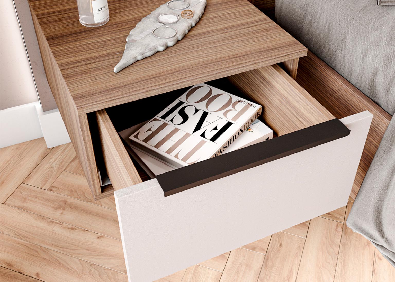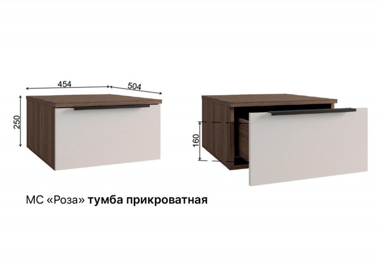 Тумба прикроватная «Роза» Белая имеет фасад из МДФ. Фурнитура оснащена доводчиками, которые обеспечивают плавное и бесшумное закрывание ящика, что делает использование тумбы более комфортным.